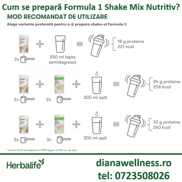 Pentru rezultate optime consuma Formula 1 în combinatie cu Formula 2 și alte produse Herbalife.
