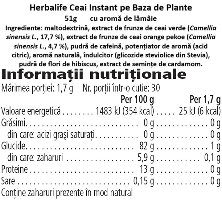 Ceaiul Herbalife Instant pe Baza de Plante este formulat cu un amestec unic de ingrediente care sprijină energia și vitalitatea zilnică: