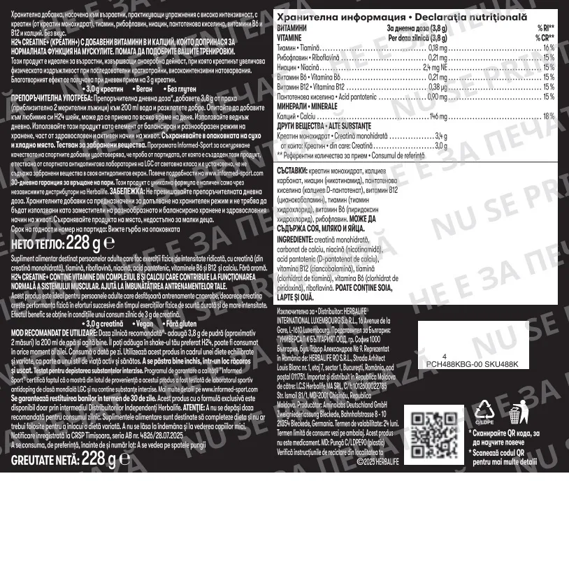 Creatine+ Herbalife H24 este un supliment alimentar cu creatină, vitamine din complexul B și calciu, conceput pentru a susține performanța fizică, forța musculară și nivelul de energie. Este potrivit atât pentru persoane active, cât și pentru cei care depun efort fizic zilnic.