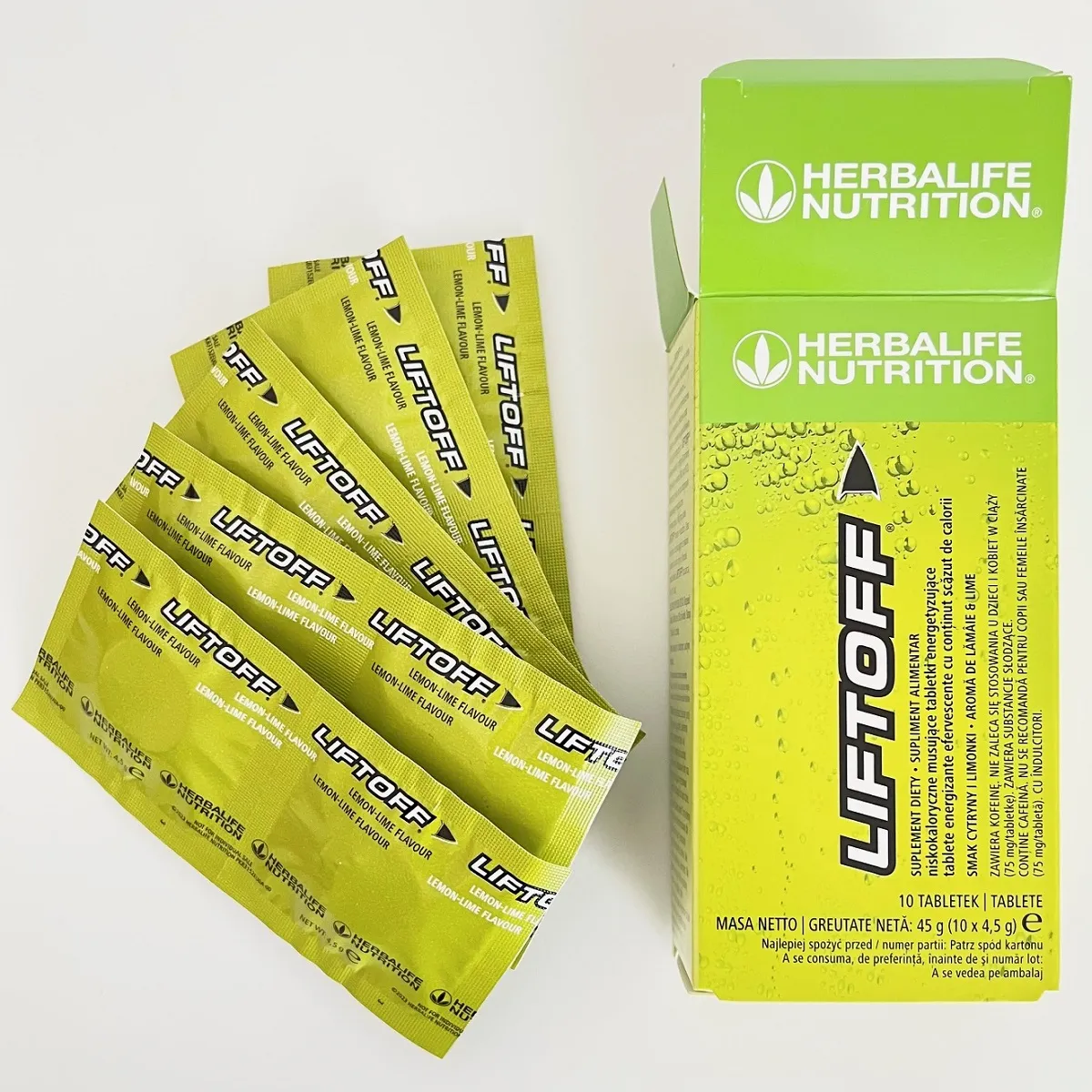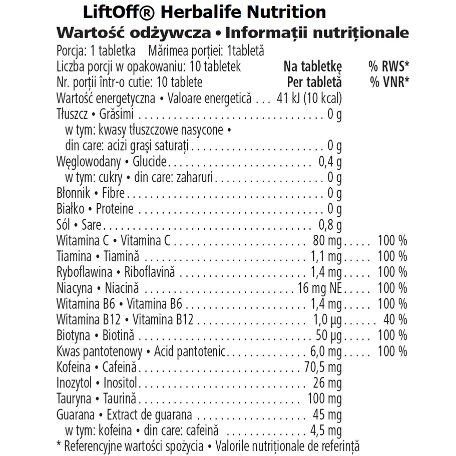 Herbalife LIFTOFF® este o băutură energizantă efervescentă, concepută pentru a oferi energie, concentrare și vitalitate în momentele în care ai nevoie de un plus de focus. Fiecare tabletă oferă aproximativ 75 mg de cofeină (inclusiv din extract de guarana) și doar 10 kcal pe porție.