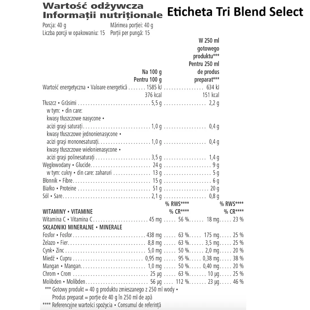 Spre deosebire de proteina din zer sau soia procesată, Tri Blend Select combină inteligent surse vegetale pentru un profil complet de aminoacizi și digestie ușoară. Este soluția perfectă pentru cei care doresc o alimentație curată, nutritivă și prietenoasă cu mediul.