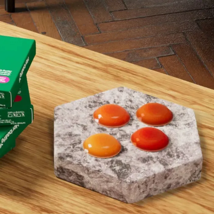 Ingrediente: ulei de floarea-soarelui, îndulcitor (xilitol), apa, îndulcitor (sorbitol), gelatina, bitartrat de colina, corector de aciditate (citrat trisodic), vitamina C (acid L-ascorbic), bisglicinat de zinc, vitamina E (D-alfa-tocoferol), aroma naturala, niacina (nicotinamida), vitamina K2 (menachinona), emulsifiant (lecitina), colorant (extract de ardei rosu), îndulcitor (glicozide steviolice din stevia), vitamina B6 (clorhidrat de piridoxina), vitamina A (palmitat de retinil), acid folic (acid (6S)-5-metiltetrahidrofolic, sarea de glucozamina), vitamina B12 (ciancobalamina), iodura de potasiu, vitamina D (colecalciferol), biotina (D-biotina).